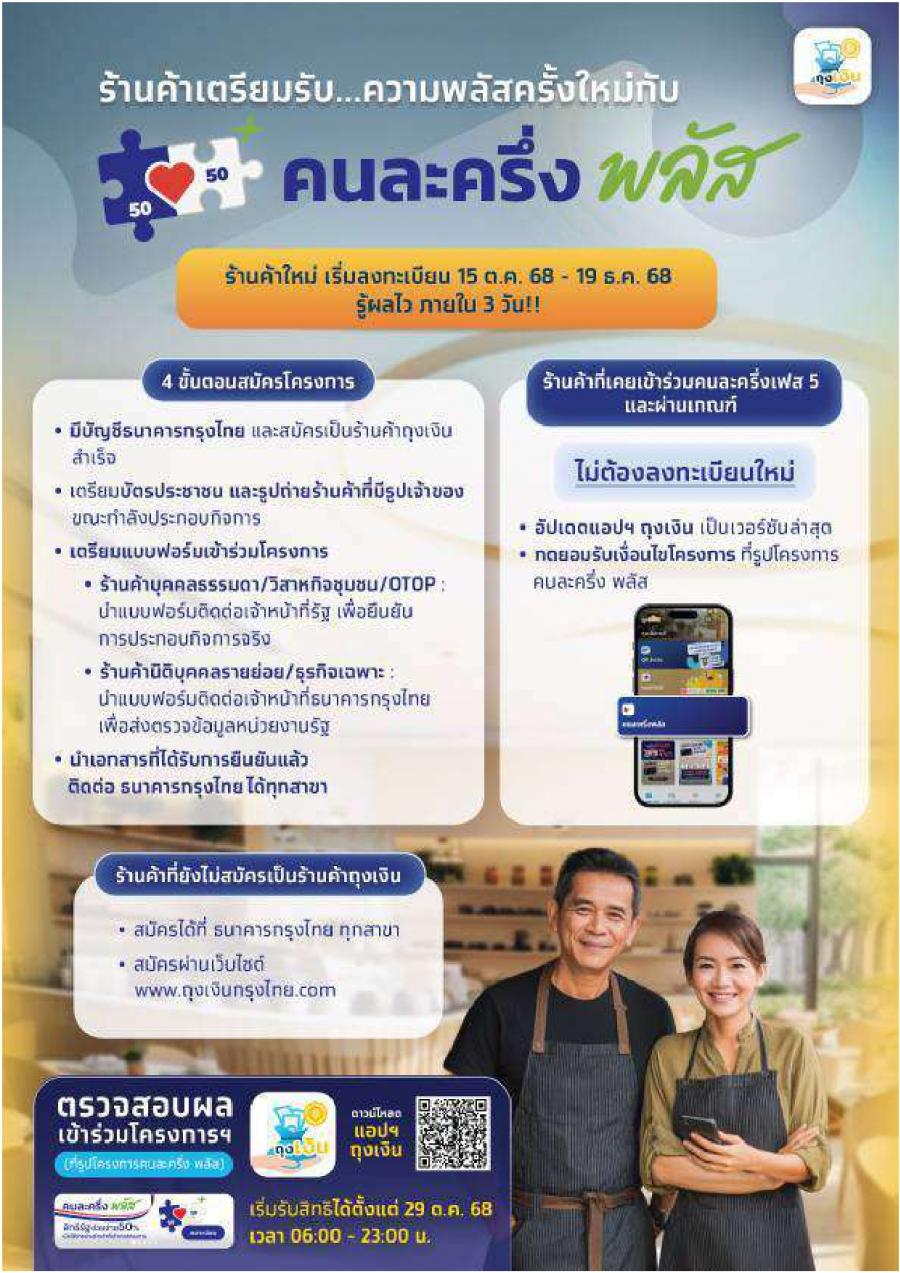 ขอความอนุเคราะห์เชิญชวนผู้ประกอบการเข้าร่วมโครงการคนละครึ่ง พลัส
