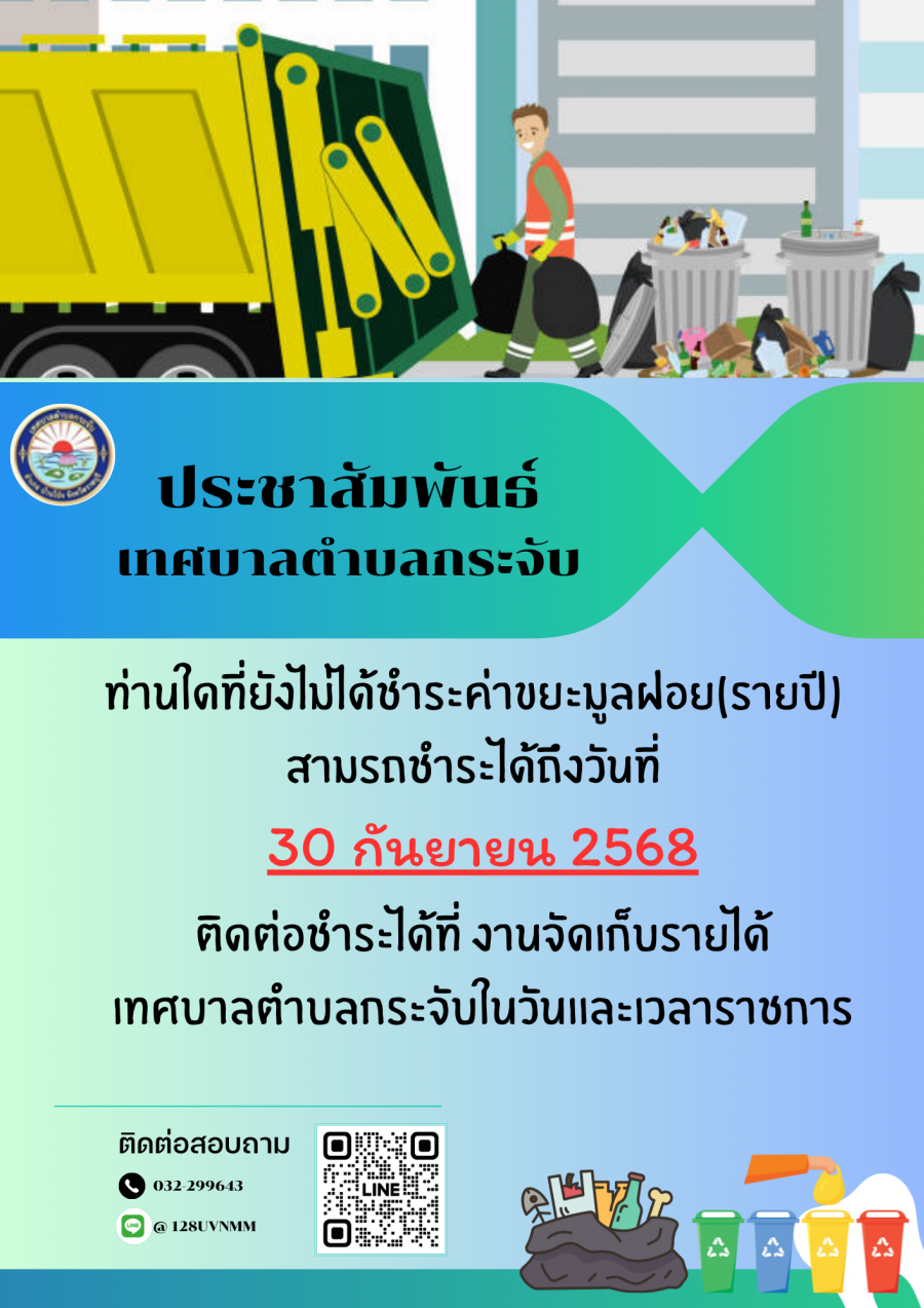 ประชาสัมพันธ์แจ้งเตือนชำระค่าธรรมเนียมเก็บและขยมูลฝอย (ค่าขยะรายปี)