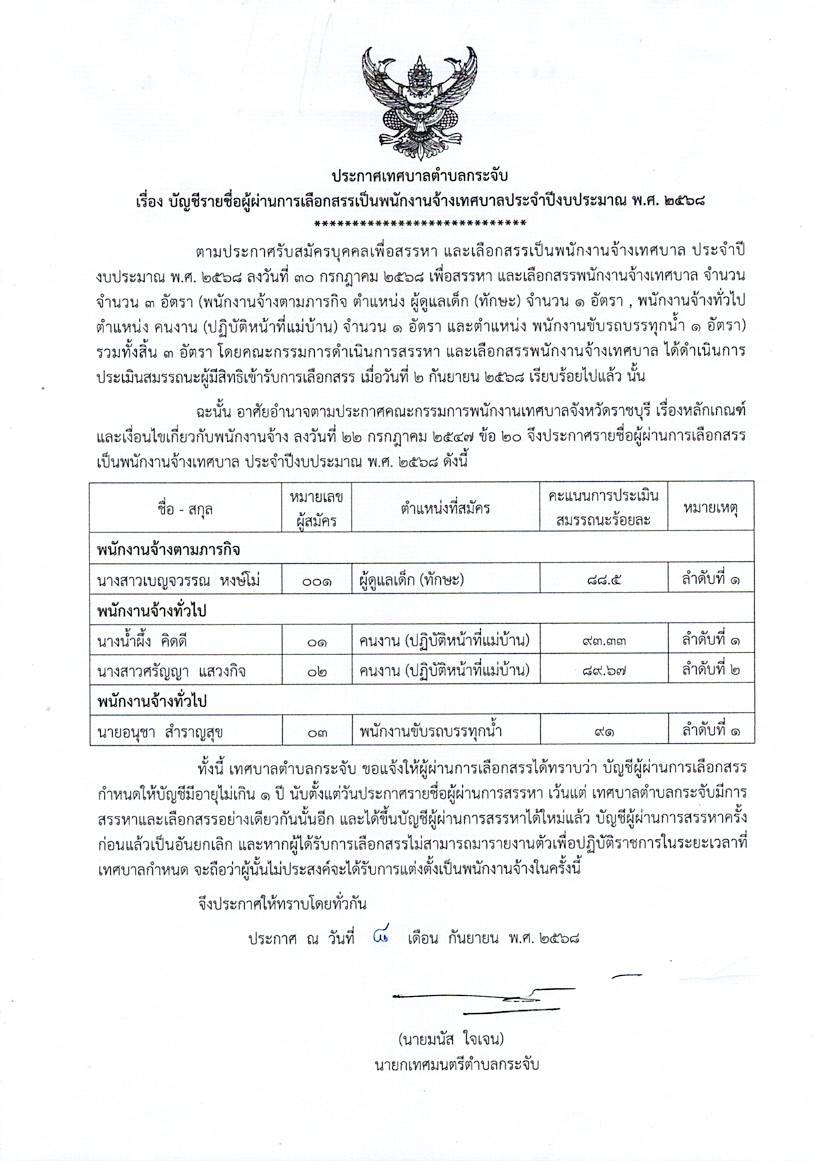 ประกาศบัญชีรายชื่อผู้ผ่านการคัดเลือกสรรเป็นพนักงานจ้างเทศบาลประจำปีงบประมาณ พ.ศ. 2568