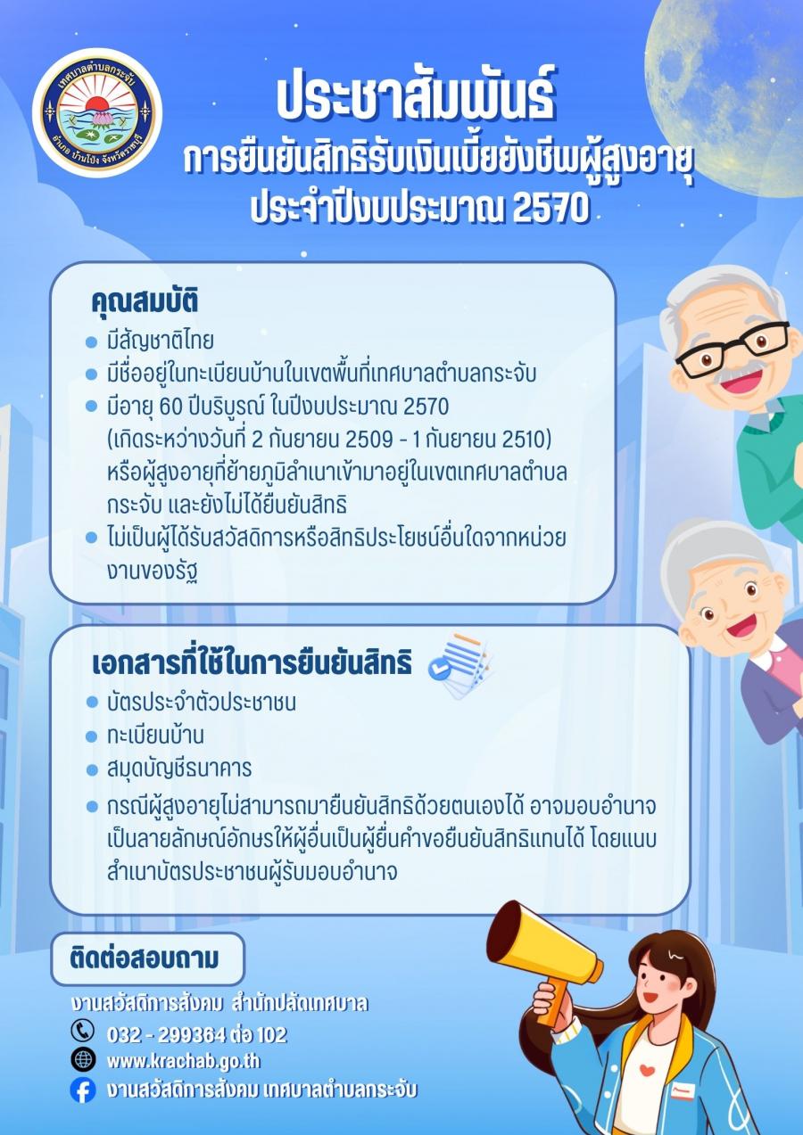 ประชาสัมพันธ์การยืนยันสิทธิรับเงินเบี้ยยังชีพผู้สูงอายุ ประจำปีงบประมาณ 2570