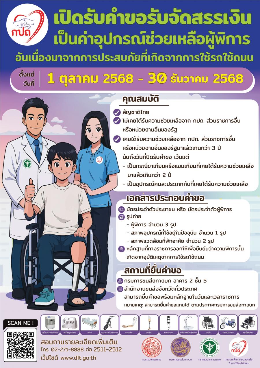 เปิดรับคำขอรับจัดสรรเงินเป็นค่าอุปกรณ์ช่วยเหลือผู้พิการ อันเนื่องมาจากการประสบภัยที่เกิดจากการใช้รถใช้ถนน